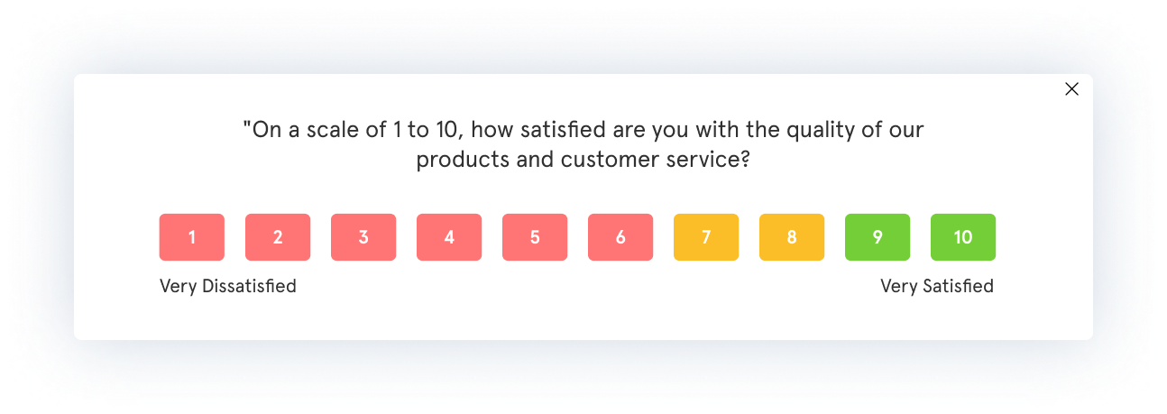 When quantifying customer satisfaction, 1 to 10 rating surveys offer a versatile approach. They provide a wide range of options, allowing customers to express their sentiments effectively. These surveys offer a clear and quantifiable way to measure customer satisfaction, enhancing understanding of customer opinions. You can also easily embed these survey questions in email surveys, send as SMS, or even on your website and in-product.