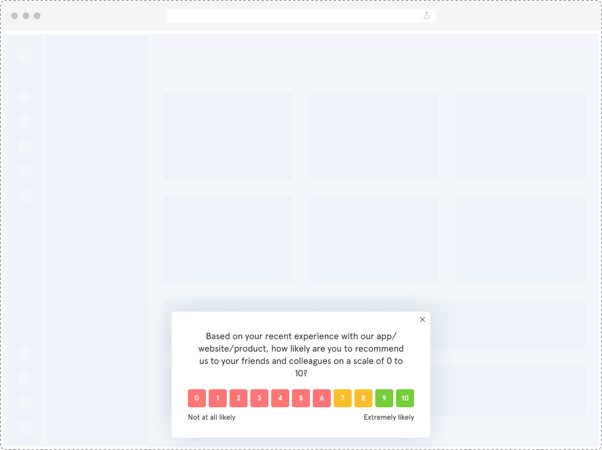 1. Based on your recent experience with our app/website/product, how likely are you to recommend us to your friends and colleagues on a scale of 0 to 10?
